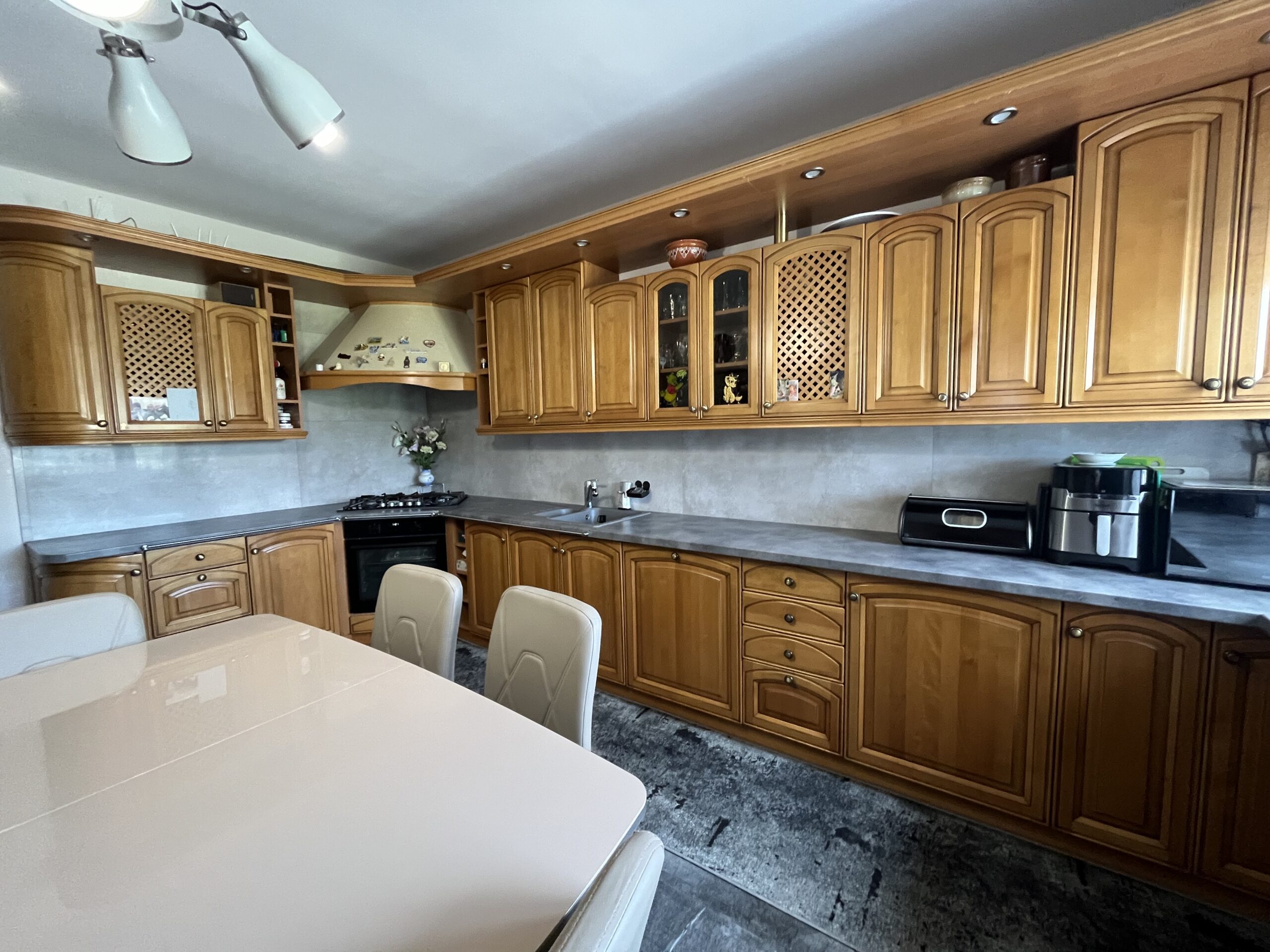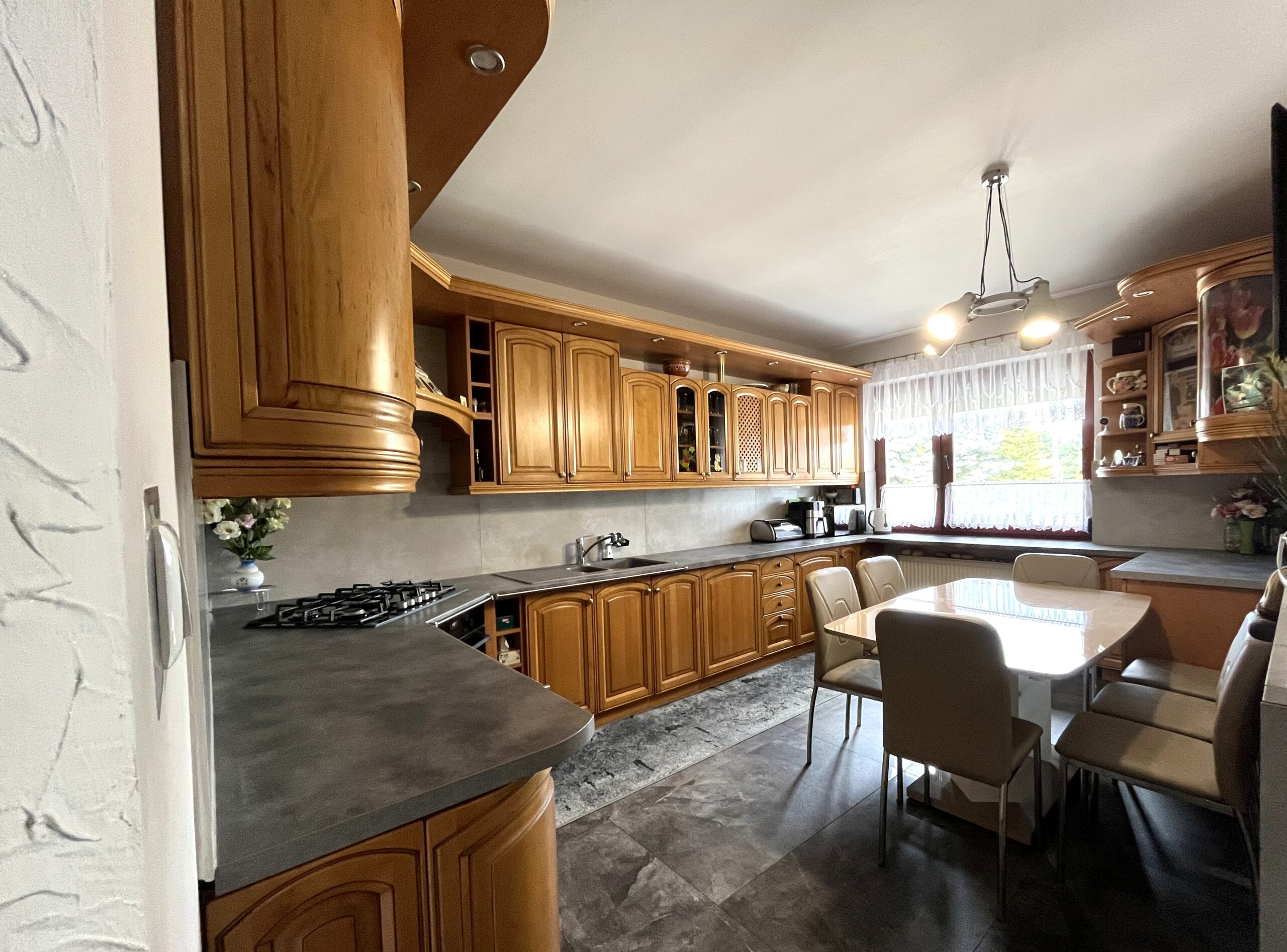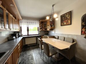 Dom sprzedawany jest z kompletnym umeblowaniem i wyposażeniem, w tym wysokiej jakości meblami drewnianymi oraz zabudową kuchenną i AGD – gotowy do zamieszkania!