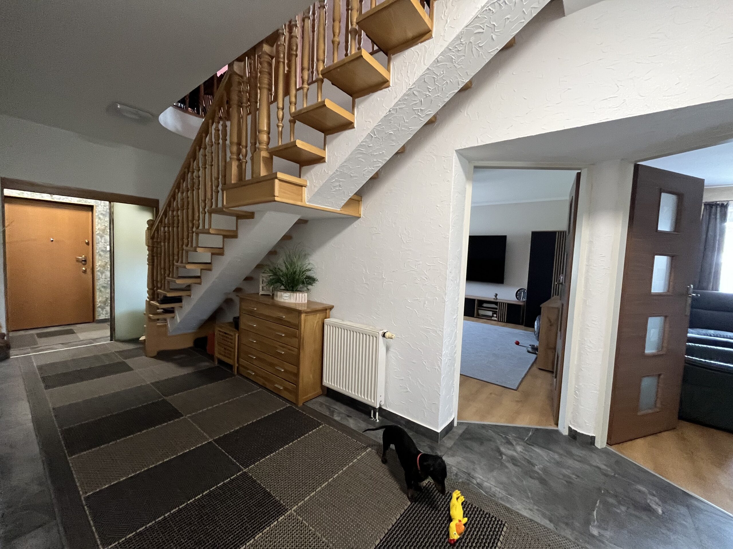 Duży hol – idealny na strefę rekreacyjną, pokój zabaw, siłownię, pracownię czy pokój bilardowy