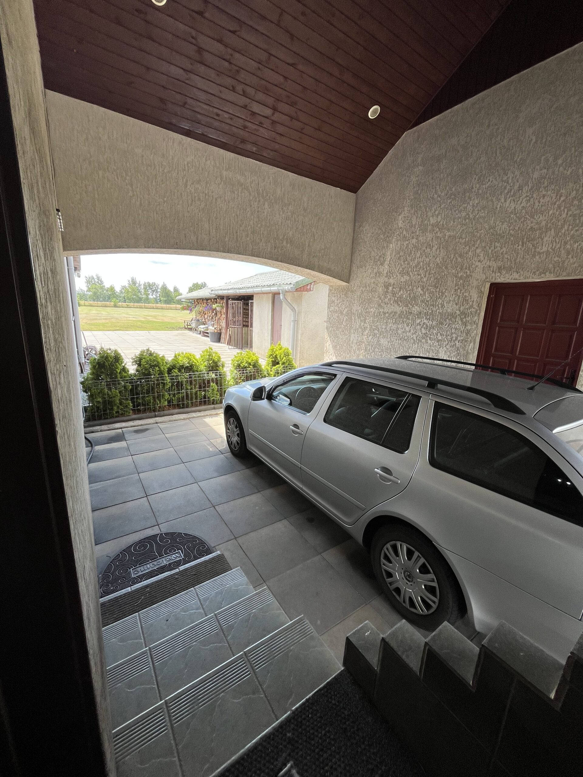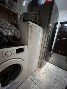 Pomieszczenie gospodarcze (z dużą lodówką, zamrażarką i pralką) z przejściem do zadaszonej wiaty